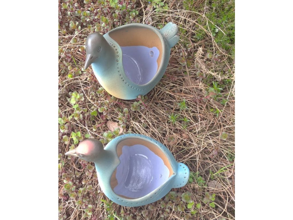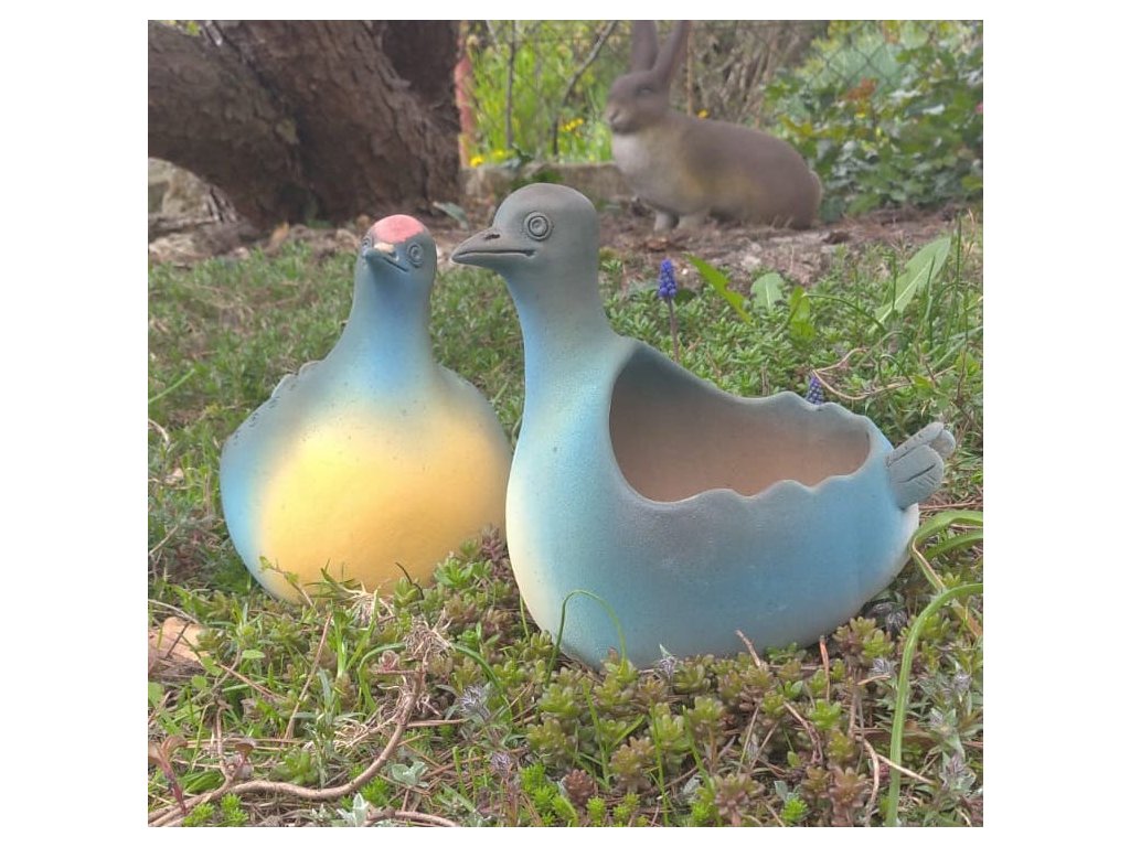 Keramický květináč koroptev Tinama, modrá barva, výška včetně hlavy 22 cm, průměr 15 cm , délka včetně ocasu 22 cm.