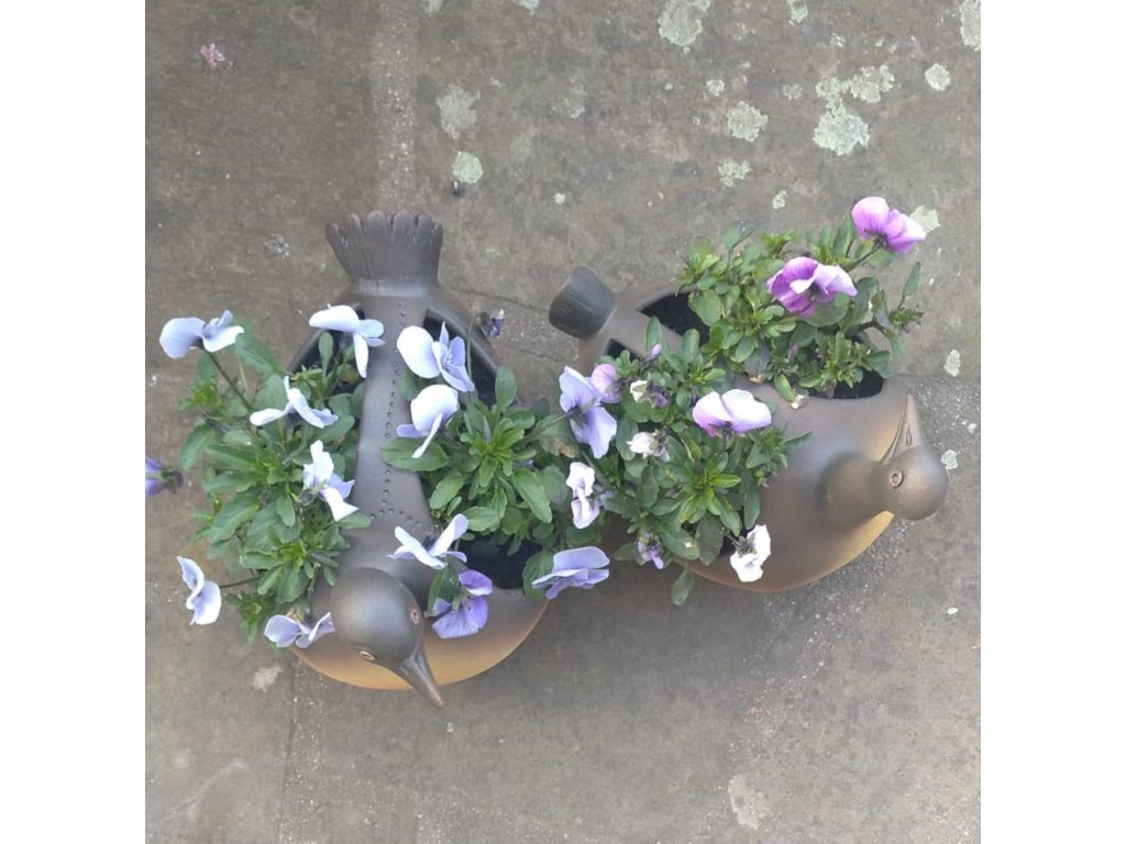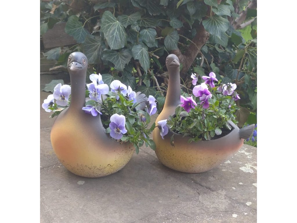 Keramický květináč koroptev Tinama, výška včetně hlavy 22 cm, průměr 15 cm, délka včetně ocasu 22 cm.