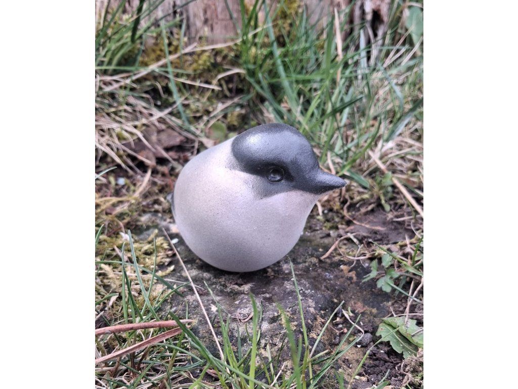 Pěnice černohlavá životní velikost, s výřezem na zavěšení.